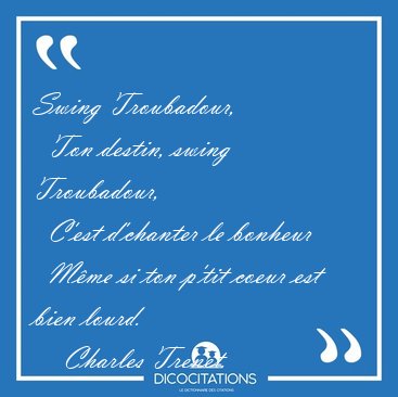 ![Swing Troubadour, Ton destin, swing Troubadour, C'est [...] - Charles Trenet... Swing Troubadour, Ton destin, swing Troubadour, C'est [...] - Charles Trenet...](/imagescitations/Swing_Troubadour_Ton_destin_swing_Troubadour_C_est_-_Charles_Trenet-100512.jpg)