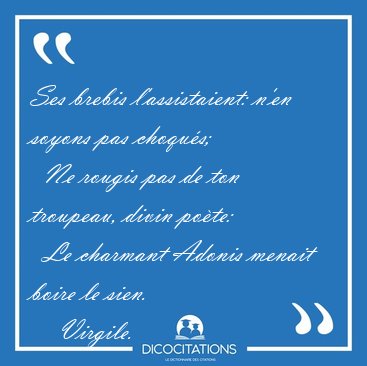 ![Ses brebis l'assistaient: n'en soyons pas choqués; Ne rougis [...] - Virgile... Ses brebis l'assistaient: n'en soyons pas choqués; Ne rougis [...] - Virgile...](/imagescitations/Ses_brebis_l_assistaient_n_en_soyons_pas_choques_Ne_rougis_-_Virgile-100517.jpg)