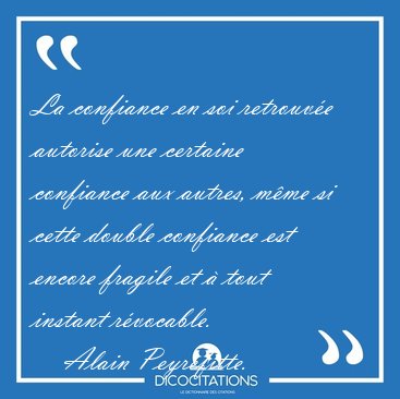 ![La confiance en soi retrouvée autorise une certaine confiance [...] - Alain Peyrefitte... La confiance en soi retrouvée autorise une certaine confiance [...] - Alain Peyrefitte...](/imagescitations/La_confiance_en_soi_retrouvee_autorise_une_certaine_confiance_-_Alain_Peyrefitte-101048.jpg)