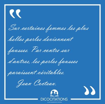 ![Sur certaines femmes les plus belles perles deviennent fausses. [...] - Jean Cocteau... Sur certaines femmes les plus belles perles deviennent fausses. [...] - Jean Cocteau...](/imagescitations/Sur_certaines_femmes_les_plus_belles_perles_deviennent_fausses_-_Jean_Cocteau-101905.jpg)