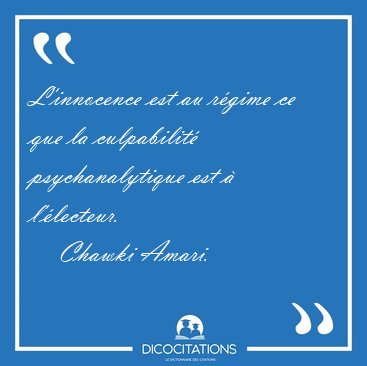 ![L'innocence est au régime ce que la culpabilité psychanalytique [...] - Chawki Amari... L'innocence est au régime ce que la culpabilité psychanalytique [...] - Chawki Amari...](/imagescitations/L_innocence_est_au_regime_ce_que_la_culpabilite_psychanalytique_-_Chawki_Amari-101964.jpg)
