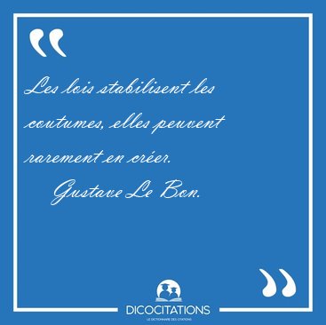 ![Les lois stabilisent les coutumes, elles peuvent rarement en [...] - Gustave Le Bon... Les lois stabilisent les coutumes, elles peuvent rarement en [...] - Gustave Le Bon...](/imagescitations/Les_lois_stabilisent_les_coutumes_elles_peuvent_rarement_en_-_Gustave_Le_Bon-102065.jpg)