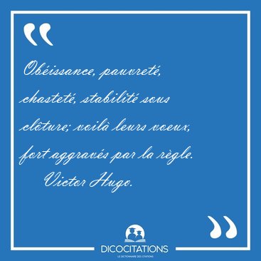 ![Obéissance, pauvreté, chasteté, stabilité sous clôture; voilà [...] - Victor Hugo... Obéissance, pauvreté, chasteté, stabilité sous clôture; voilà [...] - Victor Hugo...](/imagescitations/Obeissance_pauvrete_chastete_stabilite_sous_cloture_voila_-_Victor_Hugo-102158.jpg)