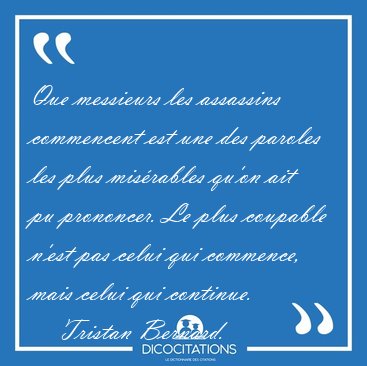 Que messieurs les assassins commencent est une des paroles les plus misérables qu'on ait pu prononcer. Le plus coupable n'est pas celui qui commence, mais celui qui continue.