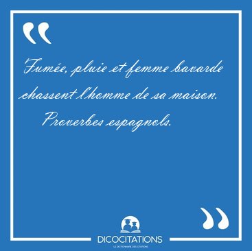 ![Fumée, pluie et femme bavarde chassent l'homme de sa [...] - Proverbes espagnols... Fumée, pluie et femme bavarde chassent l'homme de sa [...] - Proverbes espagnols...](/imagescitations/Fumee_pluie_et_femme_bavarde_chassent_l_homme_de_sa_-_Proverbes_espagnols-102503.jpg)