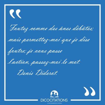 Foutez comme des ânes débâtés; mais permettez-moi que je dise foutre; je vous passe l'action, passez-moi le mot.