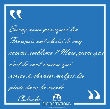 ![Savez-vous pourquoi les Français ont choisi le coq comme emblème [...] - Coluche... Savez-vous pourquoi les Français ont choisi le coq comme emblème [...] - Coluche...](/imagescitations/Savez-vous_pourquoi_les_Francais_ont_choisi_le_coq_comme_embleme_-_Coluche-103742.jpg)