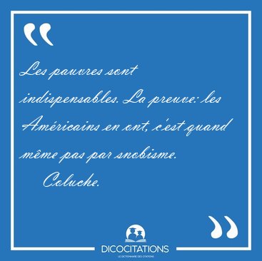 ![Les pauvres sont indispensables. La preuve: les Américains en [...] - Coluche... Les pauvres sont indispensables. La preuve: les Américains en [...] - Coluche...](/imagescitations/Les_pauvres_sont_indispensables_La_preuve_les_Americains_en_-_Coluche-103759.jpg)