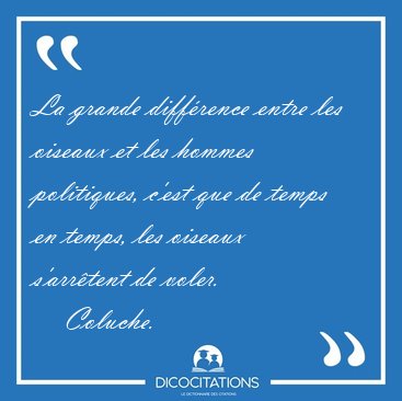 ![La grande différence entre les oiseaux et les hommes politiques, [...] - Coluche... La grande différence entre les oiseaux et les hommes politiques, [...] - Coluche...](/imagescitations/La_grande_difference_entre_les_oiseaux_et_les_hommes_politiques_-_Coluche-103768.jpg)