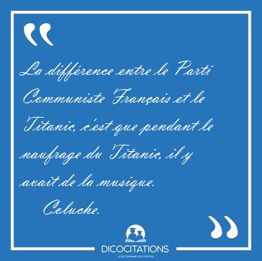 ![La différence entre le Parti Communiste Français et le Titanic, [...] - Coluche... La différence entre le Parti Communiste Français et le Titanic, [...] - Coluche...](/imagescitations/La_difference_entre_le_Parti_Communiste_Francais_et_le_Titanic_-_Coluche-103778.jpg)
