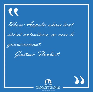 ![Ukase: Appeler ukase tout décret autoritaire, ça vexe le [...] - Gustave Flaubert... Ukase: Appeler ukase tout décret autoritaire, ça vexe le [...] - Gustave Flaubert...](/imagescitations/Ukase_Appeler_ukase_tout_decret_autoritaire_ca_vexe_le_-_Gustave_Flaubert-103869.jpg)