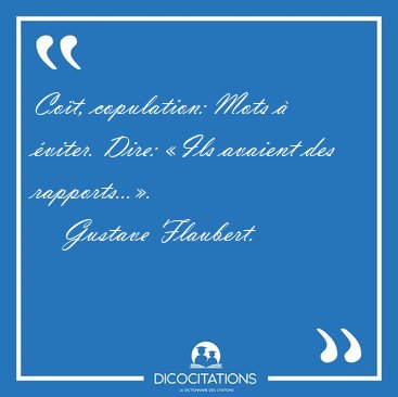 ![Coït, copulation: Mots à éviter. Dire: «Ils avaient des [...] - Gustave Flaubert... Coït, copulation: Mots à éviter. Dire: «Ils avaient des [...] - Gustave Flaubert...](/imagescitations/Coit_copulation_Mots_a_eviter_Dire_Ils_avaient_des_-_Gustave_Flaubert-103874.jpg)