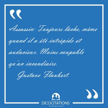 ![Assassin: Toujours lâche, même quand il a été intrépide et [...] - Gustave Flaubert... Assassin: Toujours lâche, même quand il a été intrépide et [...] - Gustave Flaubert...](/imagescitations/Assassin_Toujours_lache_meme_quand_il_a_ete_intrepide_et_-_Gustave_Flaubert-104115.jpg)