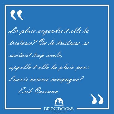 ![La pluie engendre-t-elle la tristesse? Ou la tristesse, se [...] - Erik Orsenna... La pluie engendre-t-elle la tristesse? Ou la tristesse, se [...] - Erik Orsenna...](/imagescitations/La_pluie_engendre-t-elle_la_tristesse_Ou_la_tristesse_se_-_Erik_Orsenna-104201.jpg)