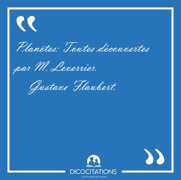 ![Planètes: Toutes découvertes par M. [...] - Gustave Flaubert... Planètes: Toutes découvertes par M. [...] - Gustave Flaubert...](/imagescitations/Planetes_Toutes_decouvertes_par_M_-_Gustave_Flaubert-104429.jpg)