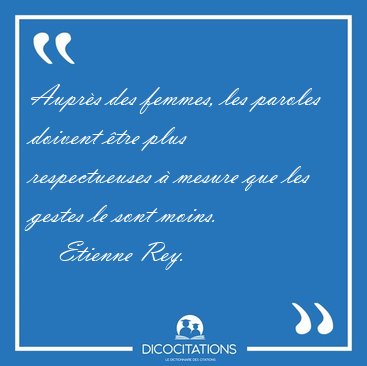 ![Auprès des femmes, les paroles doivent être plus respectueuses à [...] - Etienne Rey... Auprès des femmes, les paroles doivent être plus respectueuses à [...] - Etienne Rey...](/imagescitations/Aupres_des_femmes_les_paroles_doivent_etre_plus_respectueuses_a_-_Etienne_Rey-10494.jpg)