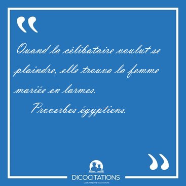 ![Quand la célibataire voulut se plaindre, elle trouva la femme [...] - Proverbes égyptiens... Quand la célibataire voulut se plaindre, elle trouva la femme [...] - Proverbes égyptiens...](/imagescitations/Quand_la_celibataire_voulut_se_plaindre_elle_trouva_la_femme_-_Proverbes_egyptiens-105085.jpg)