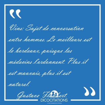 ![Vins: Sujet de conversation entre hommes. Le meilleurs est le [...] - Gustave Flaubert... Vins: Sujet de conversation entre hommes. Le meilleurs est le [...] - Gustave Flaubert...](/imagescitations/Vins_Sujet_de_conversation_entre_hommes_Le_meilleurs_est_le_-_Gustave_Flaubert-105305.jpg)