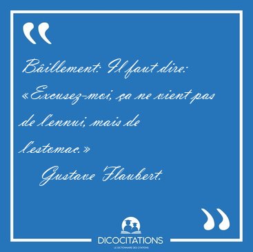 ![Bâillement: Il faut dire: «Excusez-moi, ça ne vient pas de [...] - Gustave Flaubert... Bâillement: Il faut dire: «Excusez-moi, ça ne vient pas de [...] - Gustave Flaubert...](/imagescitations/Baillement_Il_faut_dire_Excusez-moi_ca_ne_vient_pas_de_-_Gustave_Flaubert-105618.jpg)