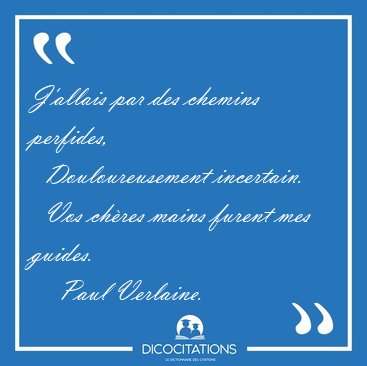 ![J'allais par des chemins perfides, Douloureusement incertain. [...] - Paul Verlaine... J'allais par des chemins perfides, Douloureusement incertain. [...] - Paul Verlaine...](/imagescitations/J_allais_par_des_chemins_perfides_Douloureusement_incertain_-_Paul_Verlaine-105659.jpg)