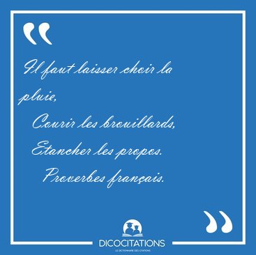 ![Il faut laisser choir la pluie, Courir les brouillards, [...] - Proverbes français... Il faut laisser choir la pluie, Courir les brouillards, [...] - Proverbes français...](/imagescitations/Il_faut_laisser_choir_la_pluie_Courir_les_brouillards_-_Proverbes_francais-105960.jpg)