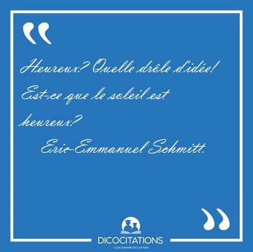 ![Heureux? Quelle drôle d'idée! Est-ce que le soleil est [...] - Eric-Emmanuel Schmitt... Heureux? Quelle drôle d'idée! Est-ce que le soleil est [...] - Eric-Emmanuel Schmitt...](/imagescitations/Heureux_Quelle_drole_d_idee_Est-ce_que_le_soleil_est_-_Eric-Emmanuel_Schmitt-106032.jpg)