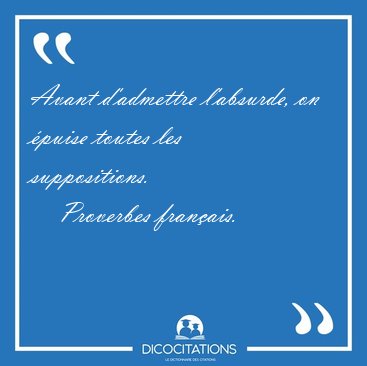 ![Avant d'admettre l'absurde, on épuise toutes les [...] - Proverbes français... Avant d'admettre l'absurde, on épuise toutes les [...] - Proverbes français...](/imagescitations/Avant_d_admettre_l_absurde_on_epuise_toutes_les_-_Proverbes_francais-106130.jpg)