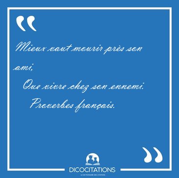 ![Mieux vaut mourir près son ami, Que vivre chez son [...] - Proverbes français... Mieux vaut mourir près son ami, Que vivre chez son [...] - Proverbes français...](/imagescitations/Mieux_vaut_mourir_pres_son_ami_Que_vivre_chez_son_-_Proverbes_francais-106514.jpg)