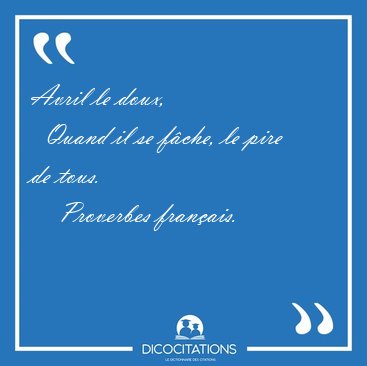 ![Avril le doux, Quand il se fâche, le pire de [...] - Proverbes français... Avril le doux, Quand il se fâche, le pire de [...] - Proverbes français...](/imagescitations/Avril_le_doux_Quand_il_se_fache_le_pire_de_-_Proverbes_francais-106589.jpg)