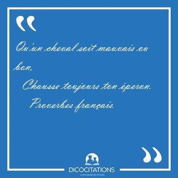 ![Qu'un cheval soit mauvais ou bon, Chausse toujours ton [...] - Proverbes français... Qu'un cheval soit mauvais ou bon, Chausse toujours ton [...] - Proverbes français...](/imagescitations/Qu_un_cheval_soit_mauvais_ou_bon_Chausse_toujours_ton_-_Proverbes_francais-106726.jpg)