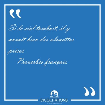 ![Si le ciel tombait, il y aurait bien des alouettes [...] - Proverbes français... Si le ciel tombait, il y aurait bien des alouettes [...] - Proverbes français...](/imagescitations/Si_le_ciel_tombait_il_y_aurait_bien_des_alouettes_-_Proverbes_francais-106758.jpg)