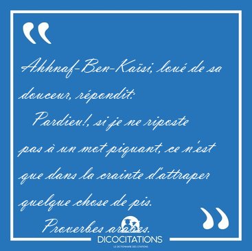 ![Ahhnaf-Ben-Kaïsi, loué de sa douceur, répondit: Pardieu!, si [...] - Proverbes arabes... Ahhnaf-Ben-Kaïsi, loué de sa douceur, répondit: Pardieu!, si [...] - Proverbes arabes...](/imagescitations/Ahhnaf-Ben-Kaisi_loue_de_sa_douceur_repondit_Pardieu_si_-_Proverbes_arabes-106942.jpg)