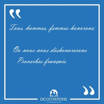 ![Tous, hommes, femmes honorons; Ou nous nous [...] - Proverbes français... Tous, hommes, femmes honorons; Ou nous nous [...] - Proverbes français...](/imagescitations/Tous_hommes_femmes_honorons_Ou_nous_nous_-_Proverbes_francais-107051.jpg)