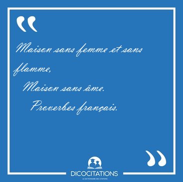 ![Maison sans femme et sans flamme, Maison sans [...] - Proverbes français... Maison sans femme et sans flamme, Maison sans [...] - Proverbes français...](/imagescitations/Maison_sans_femme_et_sans_flamme_Maison_sans_-_Proverbes_francais-107059.jpg)