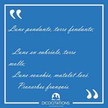 ![Lune pendante, terre fendante; Lune en cabriole, terre molle; [...] - Proverbes français... Lune pendante, terre fendante; Lune en cabriole, terre molle; [...] - Proverbes français...](/imagescitations/Lune_pendante_terre_fendante_Lune_en_cabriole_terre_molle_-_Proverbes_francais-107265.jpg)