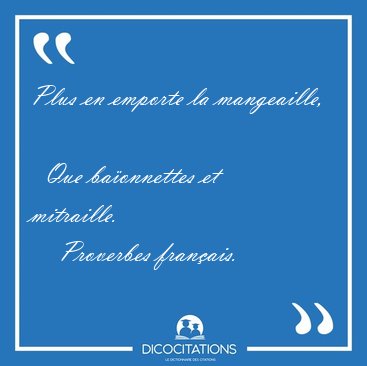![Plus en emporte la mangeaille, Que baïonnettes et [...] - Proverbes français... Plus en emporte la mangeaille, Que baïonnettes et [...] - Proverbes français...](/imagescitations/Plus_en_emporte_la_mangeaille_Que_baionnettes_et_-_Proverbes_francais-107303.jpg)