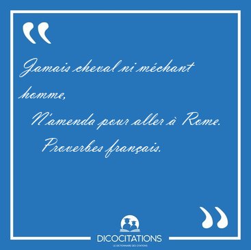 ![Jamais cheval ni méchant homme, N'amenda pour aller à [...] - Proverbes français... Jamais cheval ni méchant homme, N'amenda pour aller à [...] - Proverbes français...](/imagescitations/Jamais_cheval_ni_mechant_homme_N_amenda_pour_aller_a_-_Proverbes_francais-107688.jpg)