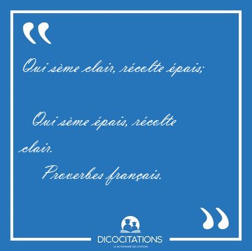 ![Qui sème clair, récolte épais; Qui sème épais, récolte [...] - Proverbes français... Qui sème clair, récolte épais; Qui sème épais, récolte [...] - Proverbes français...](/imagescitations/Qui_seme_clair_recolte_epais_Qui_seme_epais_recolte_-_Proverbes_francais-107711.jpg)