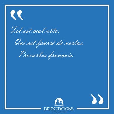 ![Tel est mal vêtu, Qui est fourré de [...] - Proverbes français... Tel est mal vêtu, Qui est fourré de [...] - Proverbes français...](/imagescitations/Tel_est_mal_vetu_Qui_est_fourre_de_-_Proverbes_francais-107827.jpg)