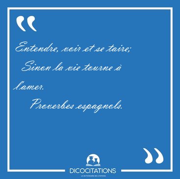 ![Entendre, voir et se taire; Sinon la vie tourne à [...] - Proverbes espagnols... Entendre, voir et se taire; Sinon la vie tourne à [...] - Proverbes espagnols...](/imagescitations/Entendre_voir_et_se_taire_Sinon_la_vie_tourne_a_-_Proverbes_espagnols-108257.jpg)