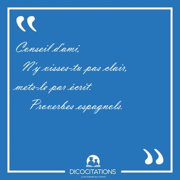 ![Conseil d'ami, N'y visses-tu pas clair, mets-le par [...] - Proverbes espagnols... Conseil d'ami, N'y visses-tu pas clair, mets-le par [...] - Proverbes espagnols...](/imagescitations/Conseil_d_ami_N_y_visses-tu_pas_clair_mets-le_par_-_Proverbes_espagnols-108270.jpg)