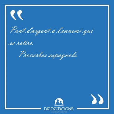 ![Pont d'argent à l'ennemi qui se [...] - Proverbes espagnols... Pont d'argent à l'ennemi qui se [...] - Proverbes espagnols...](/imagescitations/Pont_d_argent_a_l_ennemi_qui_se_-_Proverbes_espagnols-108316.jpg)