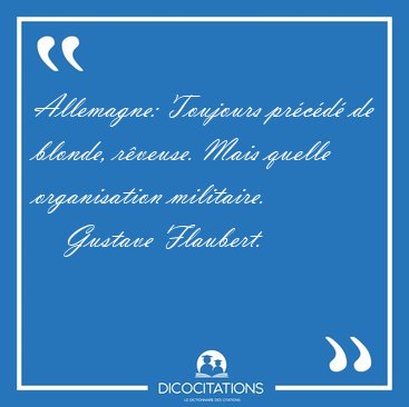 ![Allemagne: Toujours précédé de blonde, rêveuse. Mais quelle [...] - Gustave Flaubert... Allemagne: Toujours précédé de blonde, rêveuse. Mais quelle [...] - Gustave Flaubert...](/imagescitations/Allemagne_Toujours_precede_de_blonde_reveuse_Mais_quelle_-_Gustave_Flaubert-108979.jpg)