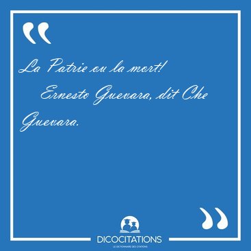 ![La Patrie ou la [...] - Ernesto Guevara, dit Che Guevara... La Patrie ou la [...] - Ernesto Guevara, dit Che Guevara...](/imagescitations/La_Patrie_ou_la_-_Ernesto_Guevara_dit_Che_Guevara-108996.jpg)