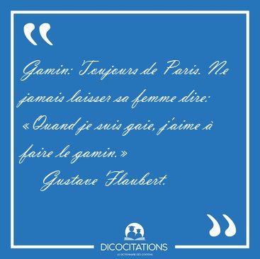 ![Gamin: Toujours de Paris. Ne jamais laisser sa femme dire: [...] - Gustave Flaubert... Gamin: Toujours de Paris. Ne jamais laisser sa femme dire: [...] - Gustave Flaubert...](/imagescitations/Gamin_Toujours_de_Paris_Ne_jamais_laisser_sa_femme_dire_-_Gustave_Flaubert-109389.jpg)