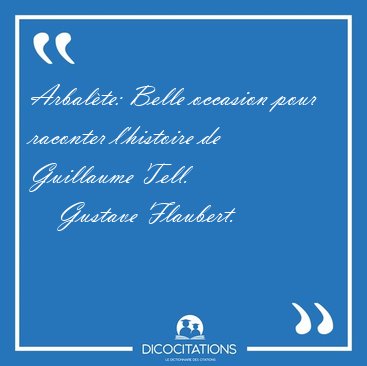 ![Arbalète: Belle occasion pour raconter l'histoire de Guillaume [...] - Gustave Flaubert... Arbalète: Belle occasion pour raconter l'histoire de Guillaume [...] - Gustave Flaubert...](/imagescitations/Arbalete_Belle_occasion_pour_raconter_l_histoire_de_Guillaume_-_Gustave_Flaubert-109467.jpg)