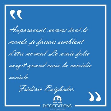 ![Auparavant, comme tout le monde, je faisais semblant d'être [...] - Frédéric Beigbeder... Auparavant, comme tout le monde, je faisais semblant d'être [...] - Frédéric Beigbeder...](/imagescitations/Auparavant_comme_tout_le_monde_je_faisais_semblant_d_etre_-_Frederic_Beigbeder-109480.jpg)