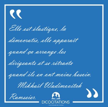 ![Elle est élastique, la démocratie, elle apparaît quand ça [...] - Mikhaïl Wadimovitch Ramseier... Elle est élastique, la démocratie, elle apparaît quand ça [...] - Mikhaïl Wadimovitch Ramseier...](/imagescitations/Elle_est_elastique_la_democratie_elle_apparait_quand_ca_-_Mikhail_Wadimovitch_Ramseier-109887.jpg)