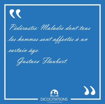 ![Pédérastie: Maladie dont tous les hommes sont affectés à un [...] - Gustave Flaubert... Pédérastie: Maladie dont tous les hommes sont affectés à un [...] - Gustave Flaubert...](/imagescitations/Pederastie_Maladie_dont_tous_les_hommes_sont_affectes_a_un_-_Gustave_Flaubert-109909.jpg)