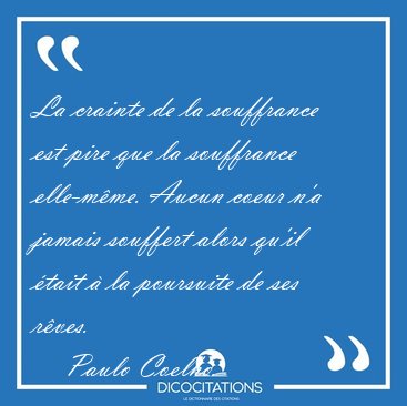 La crainte de la souffrance est pire que la souffrance elle-même. Aucun coeur n'a jamais souffert alors qu'il était à la poursuite de ses rêves.